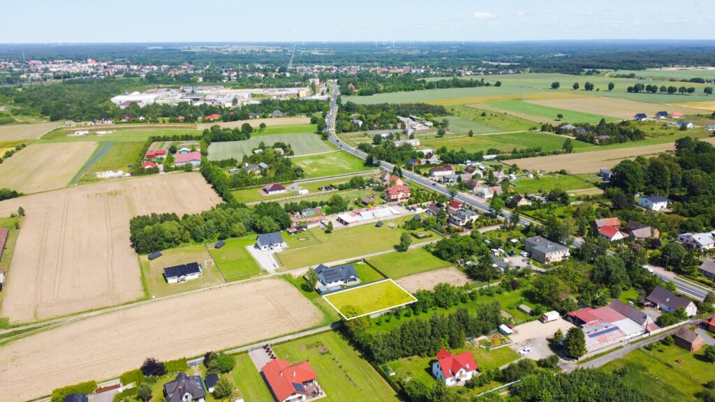 Przyłącze wodociągowe i kanalizacyjne znajduje się bezpośrednio przy działce – w drodze gminnej, natomiast sieć energetyczna przebiega w odległości około 100 metrów, również wzdłuż drogi gminnej przylegającej do nieruchomości.
