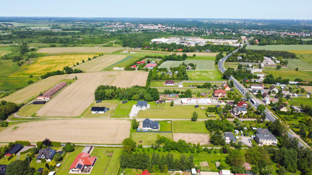 Działka położona jest 100 metrów od drogi krajowej nr 6, co zapewnia bardzo dobrą komunikację zarówno w kierunku Koszalina, jak i Słupska.
