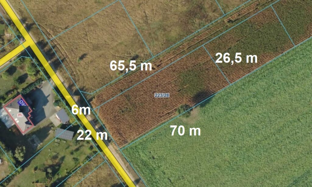 Atrakcyjna działka gruntu numer 223/28 położona bezpośrednio przy pasie drogi gminnej, w sąsiedztwie kompleksu pięciu wydzielonych również przeznaczonych do sprzedaży działek. Działka w kształcie prostokąta o powierzchni 1845 mkw. to idealny metraż pod komfortowy dom jednorodzinny z ogrodem oraz swobodne  zagospodarowanie według własnych potrzeb.