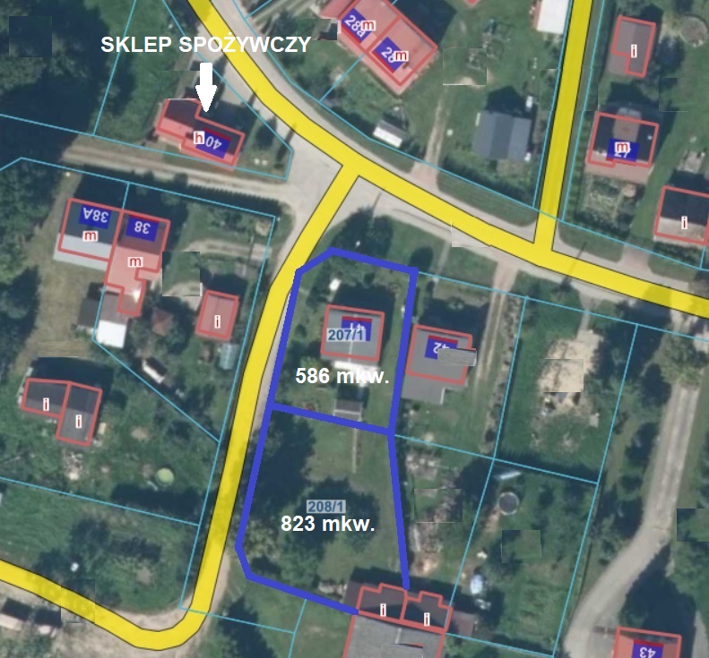 Całość nieruchomości obejmuje dwie przyległe działki o łącznej powierzchni 1409 m²: