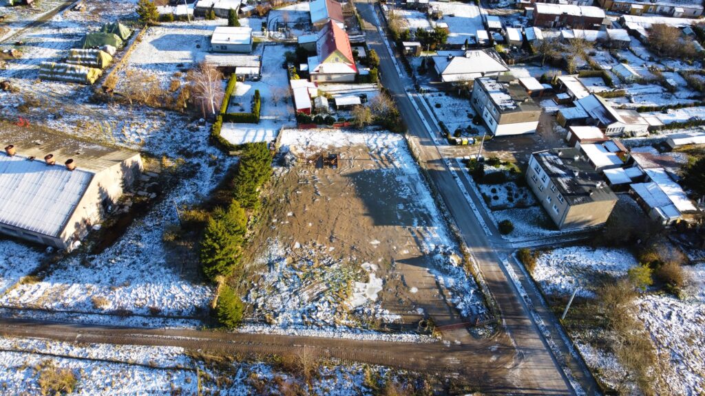 Działka jest narożna i posiada dostęp do dwóch dróg gminnych, co znacząco zwiększa swobodę w projektowaniu przyszłej zabudowy. Takie ułożenie daje ogromny komfort – można zaplanować dwa niezależne wjazdy, wygodnie rozplanować układ domu, a nawet rozważyć podział terenu.