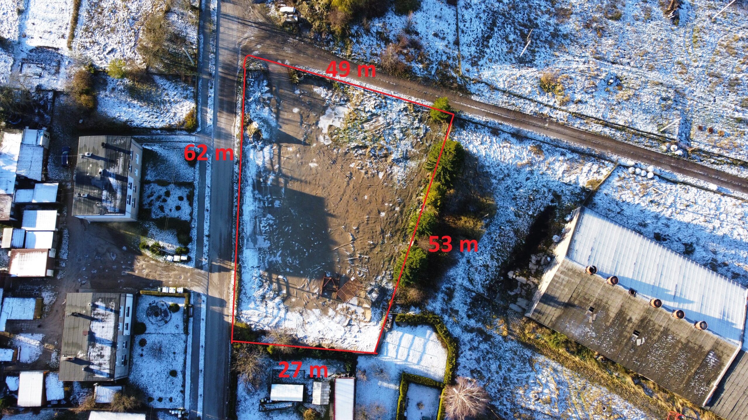 – Wymiary działki: 49m x 53m x 27m x 62m
