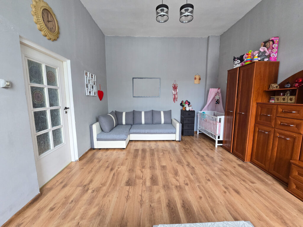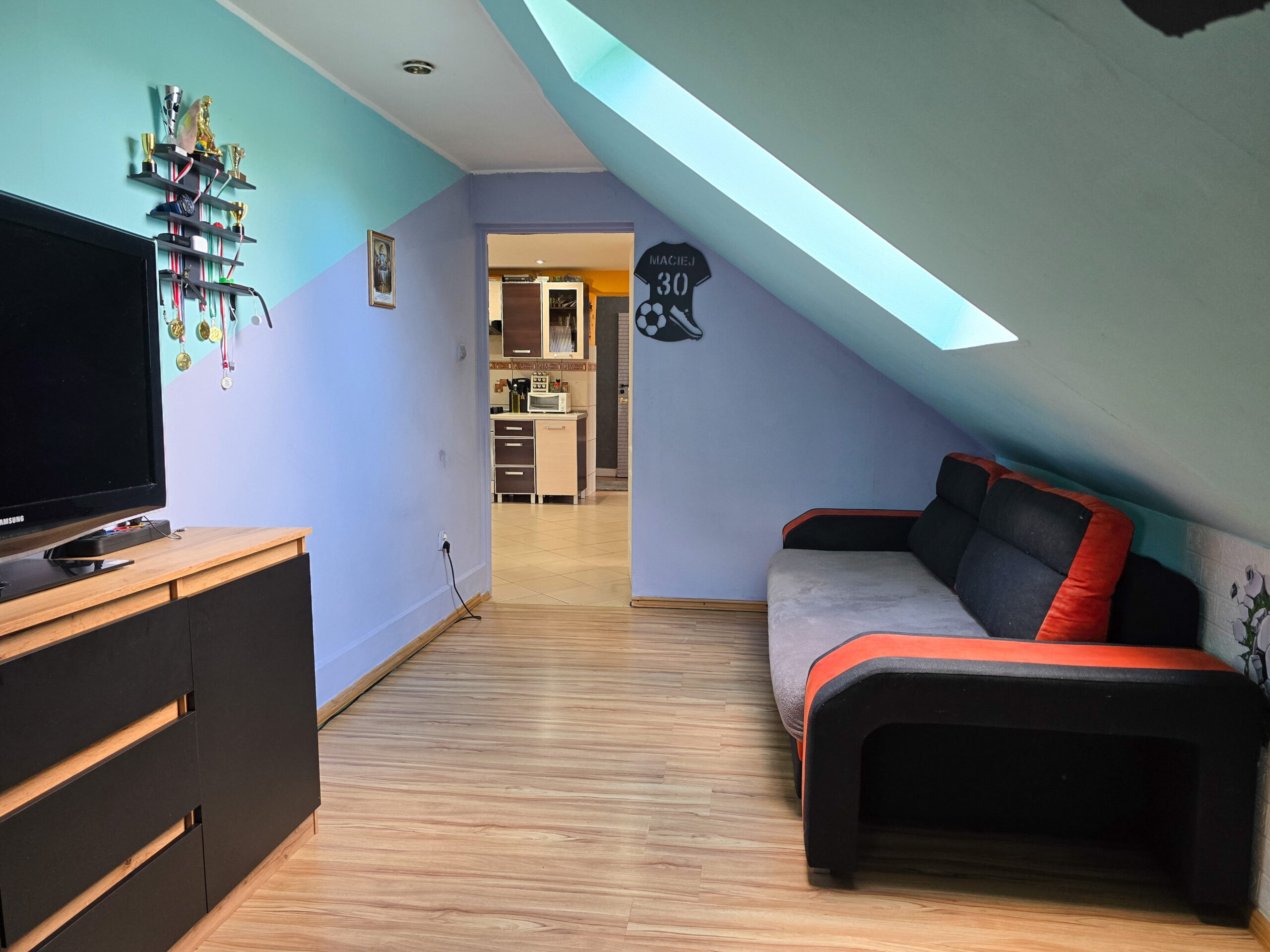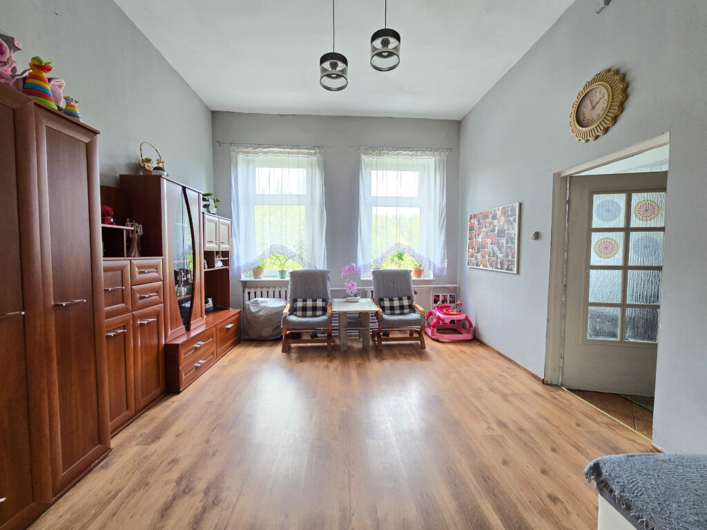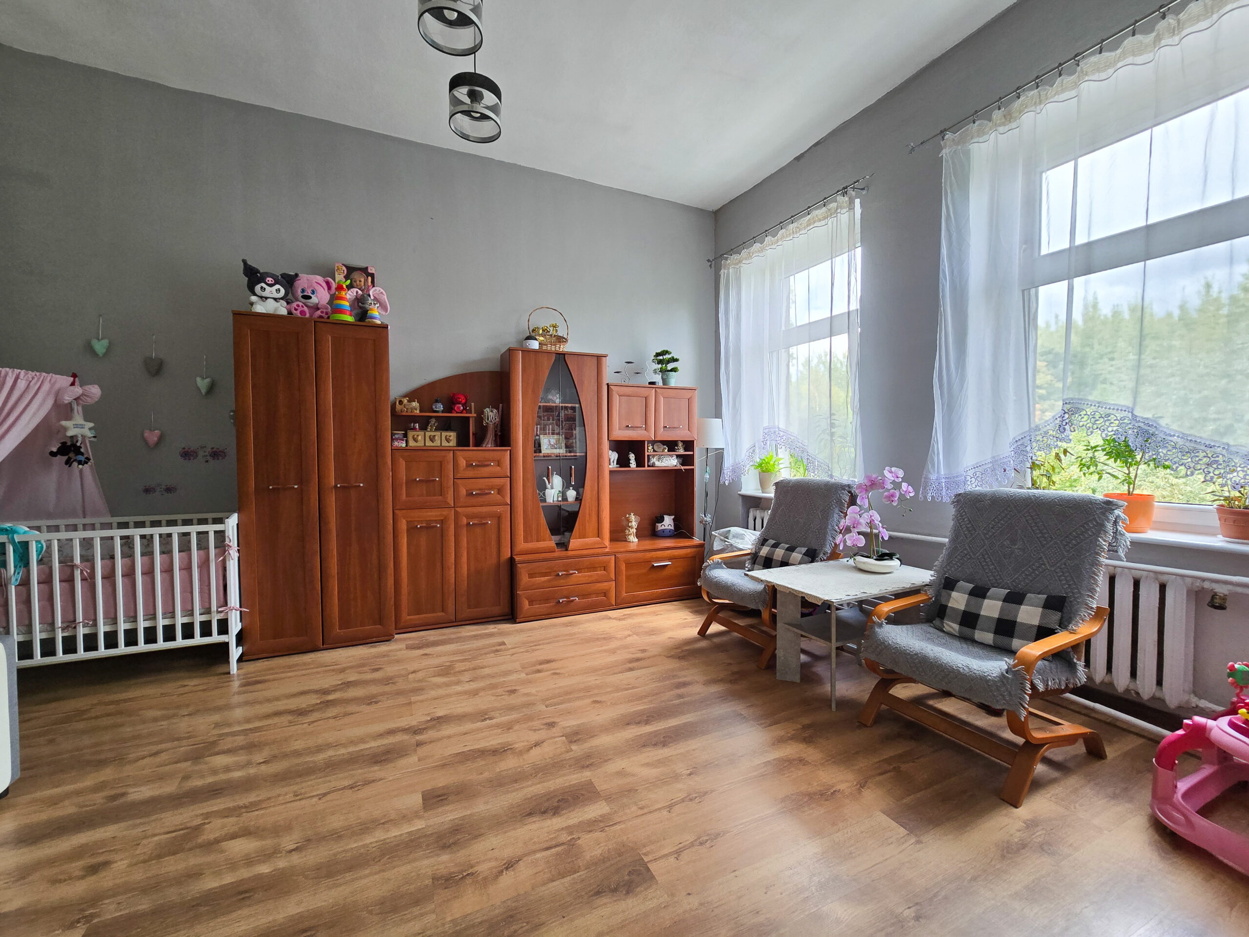 Na podłogach znajdują się panele, w kuchni, łazience i przedpokoju – terakota. Okna PCV w kolorze białym zapewniają dobre doświetlenie wnętrz – ekspozycja południowo-wschodnia. W 2021 roku wymieniono pokrycie dachowe. Ogrzewanie i ciepła woda z pieca CO na opał stały (piec w korytarzu).