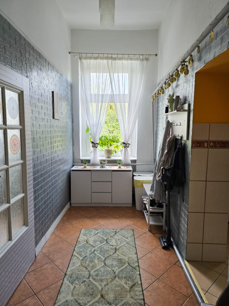 Mieszkanie znajduje się na pierwszym piętrze zabytkowego, ośmiorodzinnego budynku. Przestronny lokal mieszkalny o łącznej powierzchni użytkowej 93,31 mkw. składa się z 4 pokoi, kuchni, łazienki z WC oraz przedpokoju.
