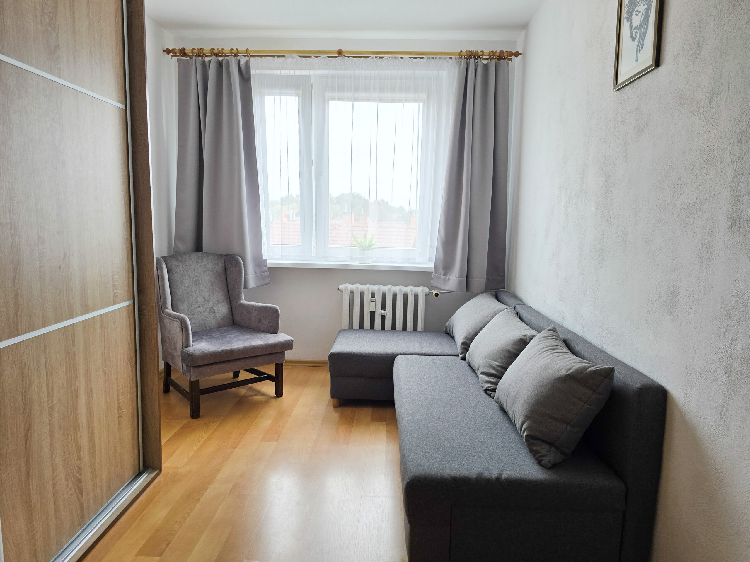 Mieszkanie usytuowane jest na czwartym piętrze w czteropiętrowym bloku. Budynek wyremontowany, ocieplony, obok parkingi, place zabaw i skwerki zieleni dla mieszkańców.