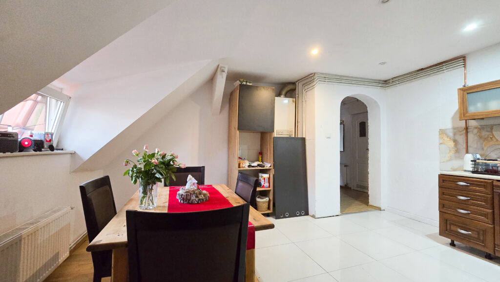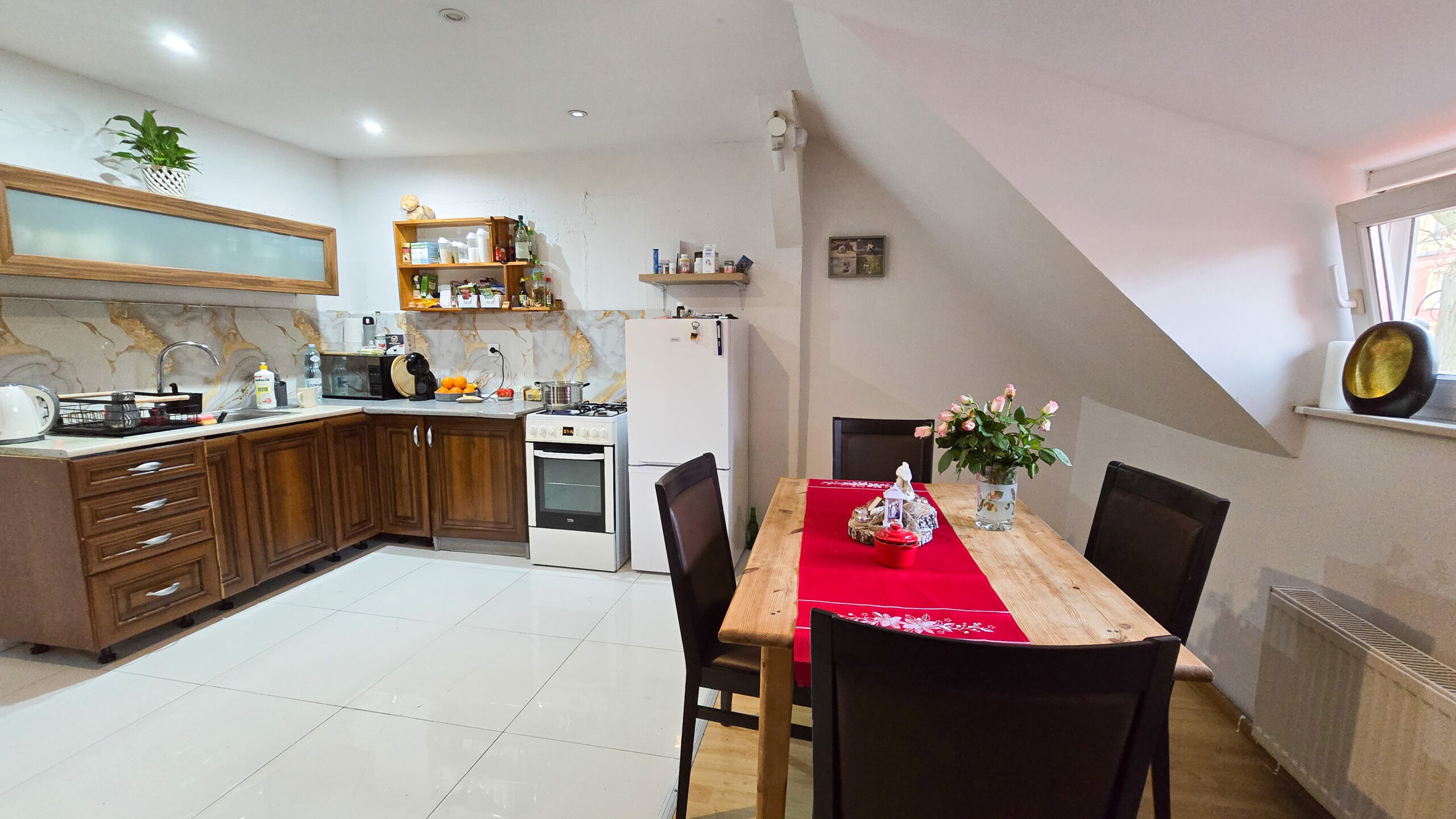 Lokal wyposażony jest w pełne media: instalację wodno-kanalizacyjną, elektryczną oraz gazową. Stolarka okienna PCV w kolorze białym oraz drewniane okna połaciowe zapewniają dobre doświetlenie wnętrz. Ogrzewanie oraz ciepła woda użytkowa pochodzą z dwufunkcyjnego pieca gazowego, co pozwala na pełną kontrolę kosztów utrzymania.
