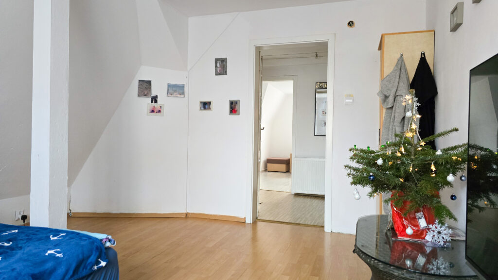 Prezentowane mieszkanie to dwustronny, rozkładowy lokal o powierzchni użytkowej 66,71 mkw., oferujący wygodny i funkcjonalny układ pomieszczeń. W jego skład wchodzą dwa ustawne pokoje, kuchnia, łazienka, WC oraz przedpokój.
