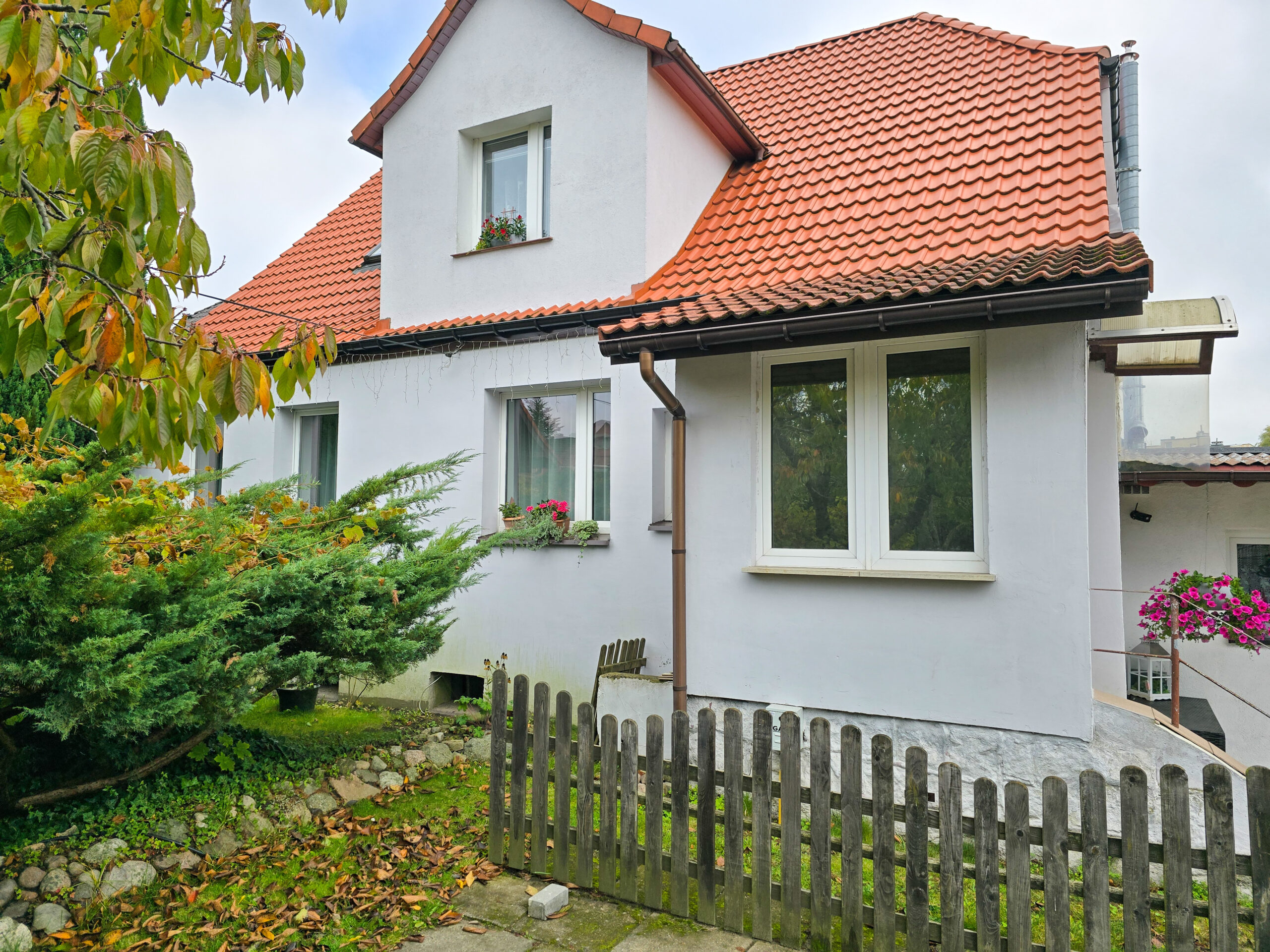 Budynek został docieplony styropianem 10 cm, a elewacja świeżo pomalowana – prezentuje się bardzo estetycznie. Dach przeszedł gruntowny remont w 2021 roku – położono nową dachówkę, która nadaje całości elegancji i trwałości. Wejście do dwóch odrębnych lokali mieszkalnych prowadzi ze wspólnego, zadbanego ganku.